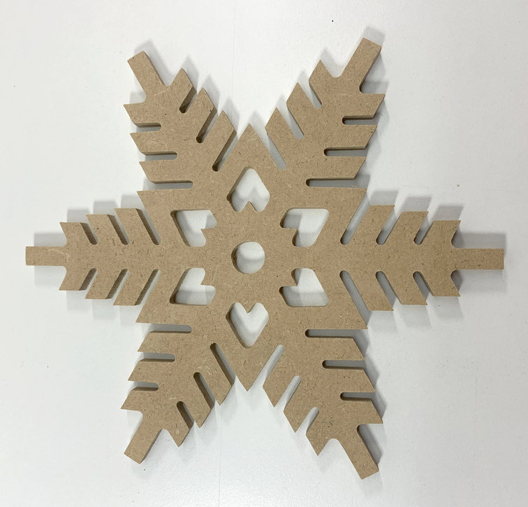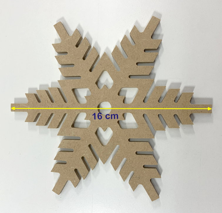 Para la decoración navideña los copos de nieve en fibro de 5,5 mm. de espesor x 16 cm. de alto.