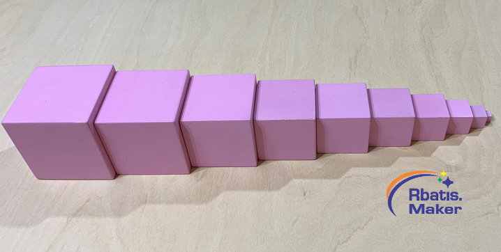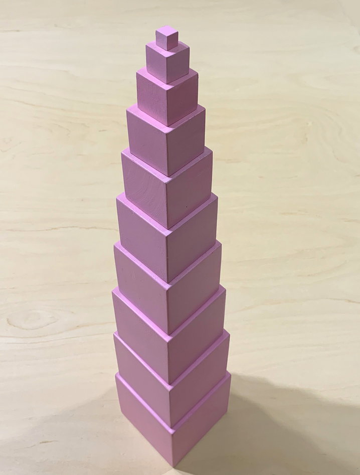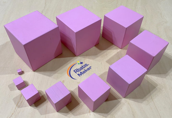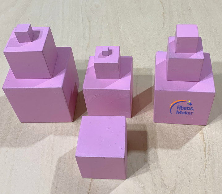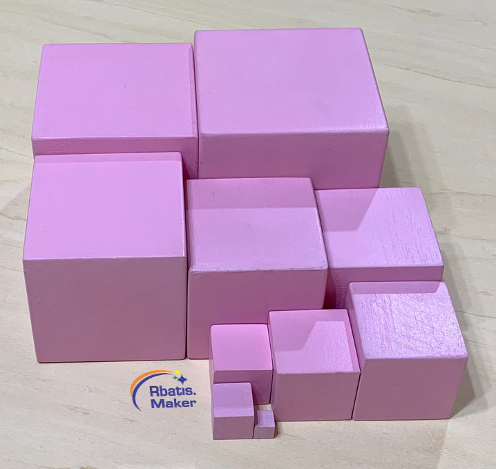 10 Cubos de madera apilables pintados de rosado e hidrolaqueados transparentes antidesgaste.